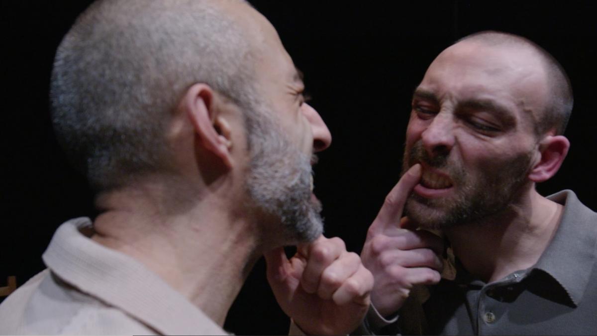 Ailleurs c’est ici et partout, c’est la vie en mouvement. C’est l’instant qui bouillonne et l’avenir en suspens. Deux hommes, étrangement semblables dans l’attente qui les réunit, se partagent un périmètre réduit. Leur univers va s’élargir pour révéler leurs singularités, entre illusion d’unisson et distorsion de l’espace-temps. Leur geste mesuré contient autant l’errance incrédule que l’envahissante inquiétude, la conscience des frontières.